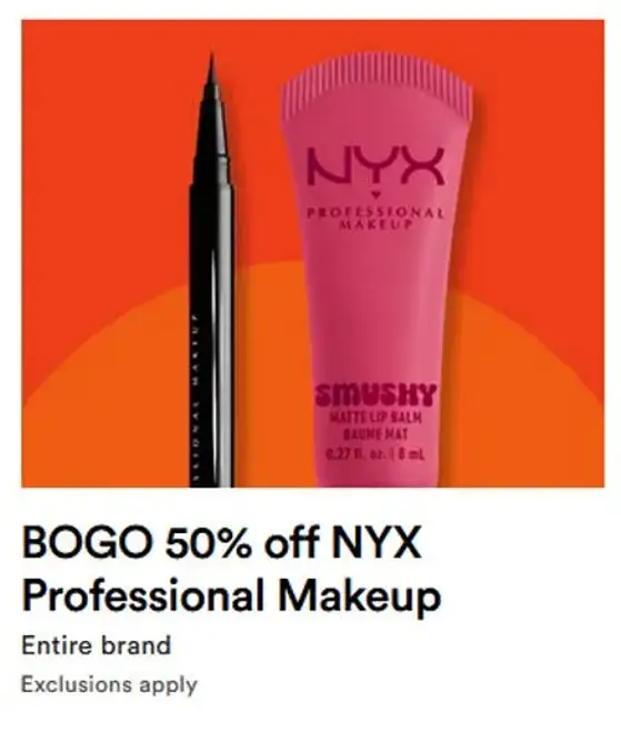 BOGO 50% off NYX Professional Makeup